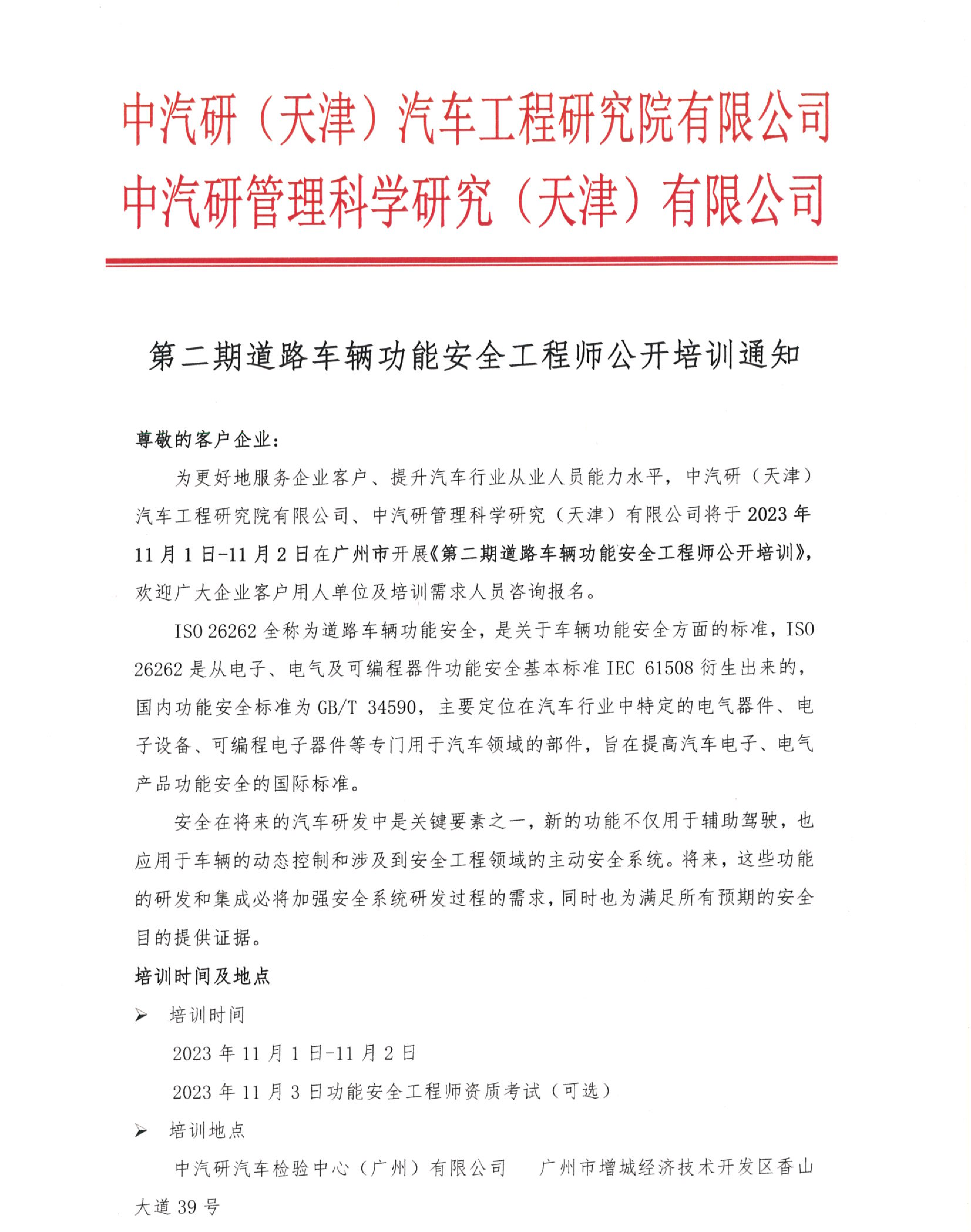 公開(kāi)培訓-ISO26262汽車(chē)功能安全工程師培訓通知