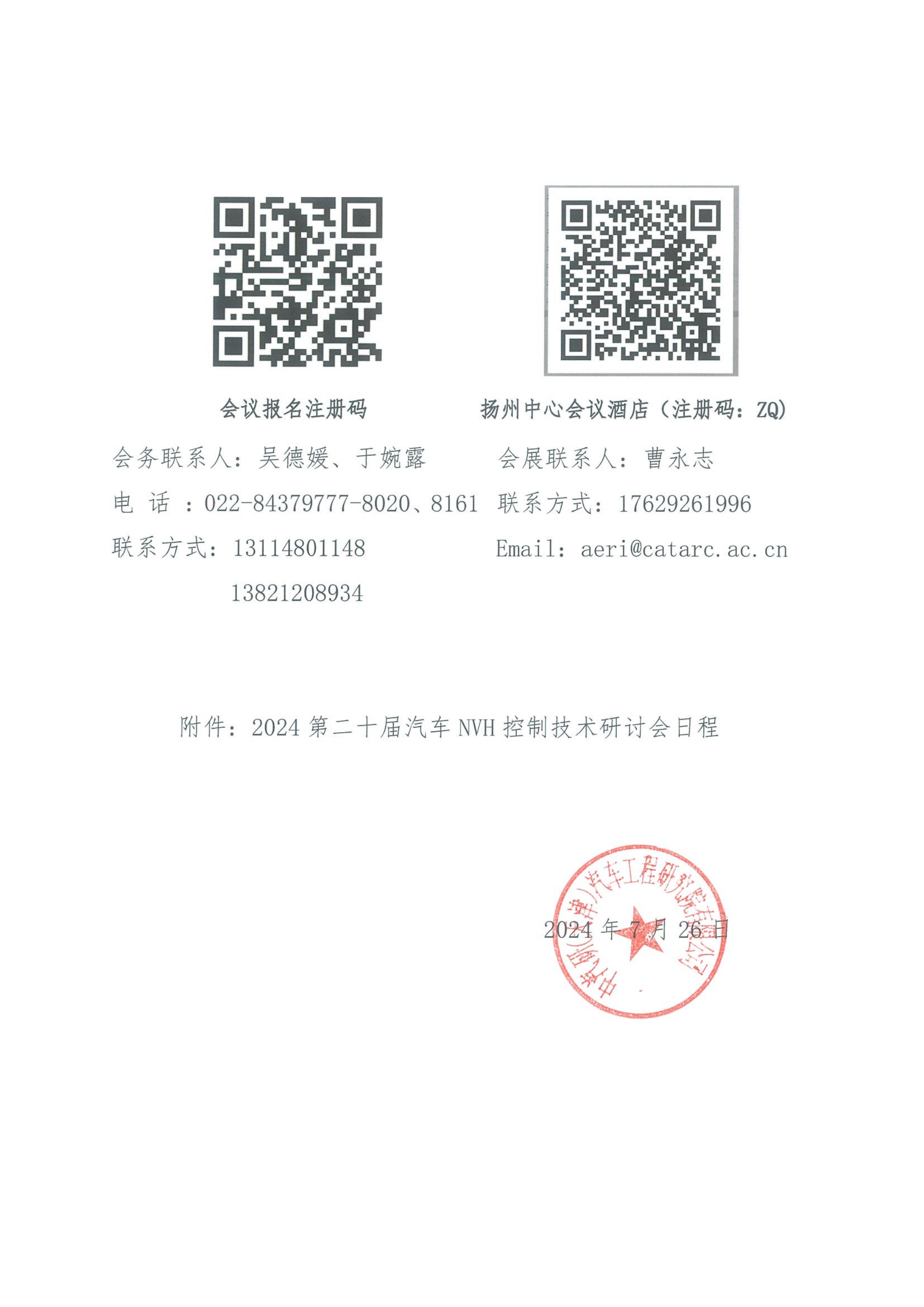 關(guān)于舉辦“2024第二十屆汽車(chē)NVH控制技術(shù)研討會(huì )”的通知
