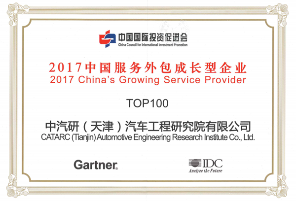 日前,中國國際投資促進(jìn)會(huì )公布了2017年中國服務(wù)外包百強成長(cháng)型企業(yè)名單,中汽研(天津)汽車(chē)工程研究院有限公司(以下簡(jiǎn)稱(chēng)“中汽研公司”)榮膺在列,獲得“2017中國服務(wù)外包百強成長(cháng)型企業(yè)”稱(chēng)號。