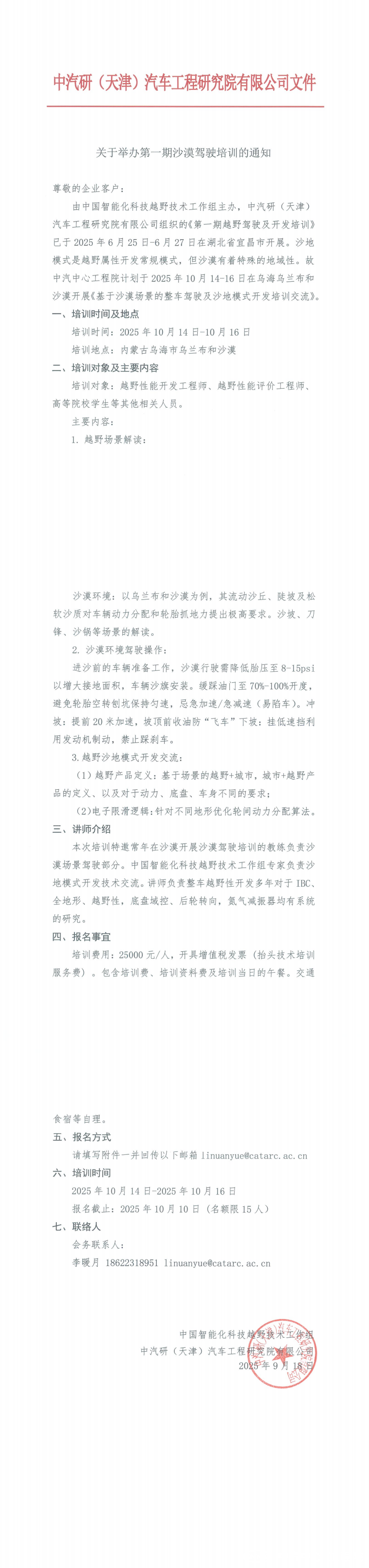 關(guān)于舉辦第一期沙漠駕駛培訓的通知