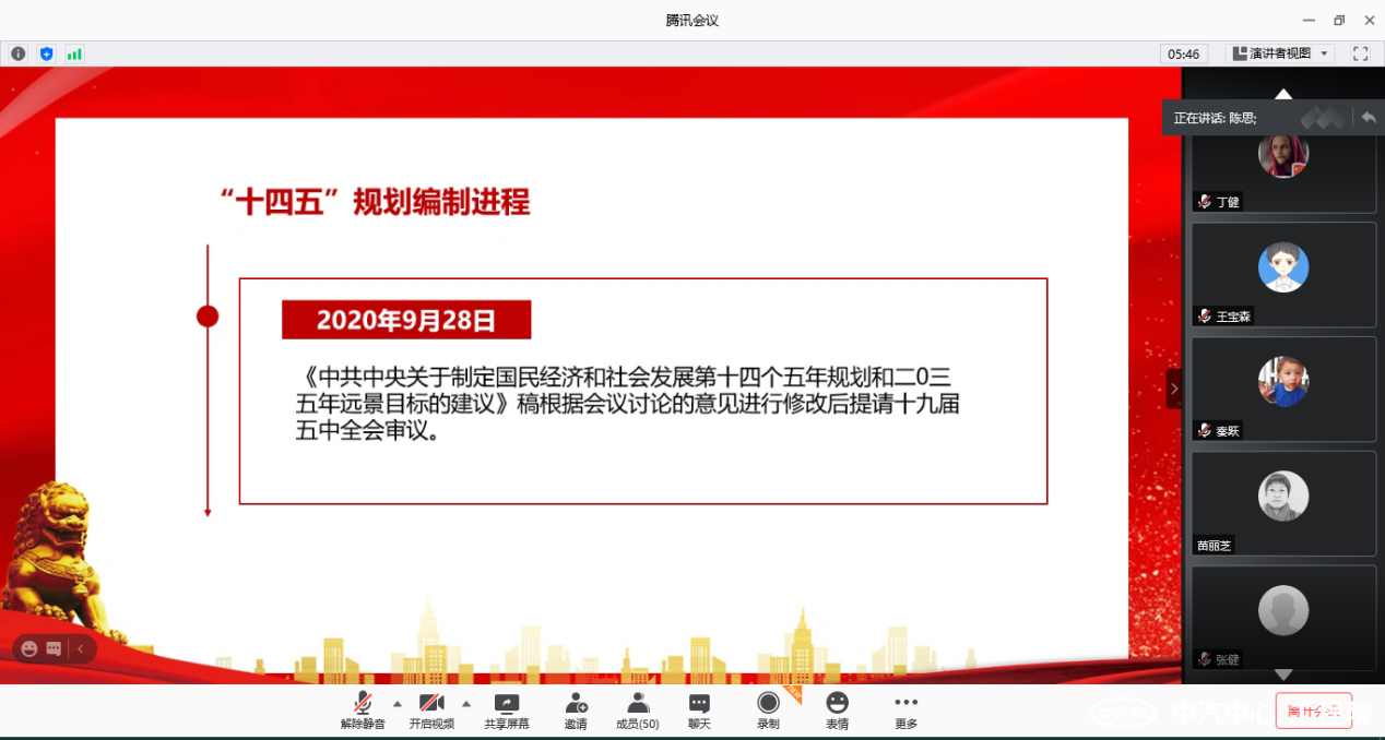 會(huì )議第一項,由第五支部書(shū)記唐風(fēng)敏同志帶領(lǐng)大家共同學(xué)習和解讀了黨的十九屆五中全會(huì )內容,闡明了大會(huì )的意義和所傳達的精神。第四支部書(shū)記劉雙喜強調,無(wú)論是黨員同志還是普通群眾,都要持續深化十九屆五中全會(huì )精神,加強業(yè)務(wù)聯(lián)系,并在今后工作中將之作為指導方針和主要目標。