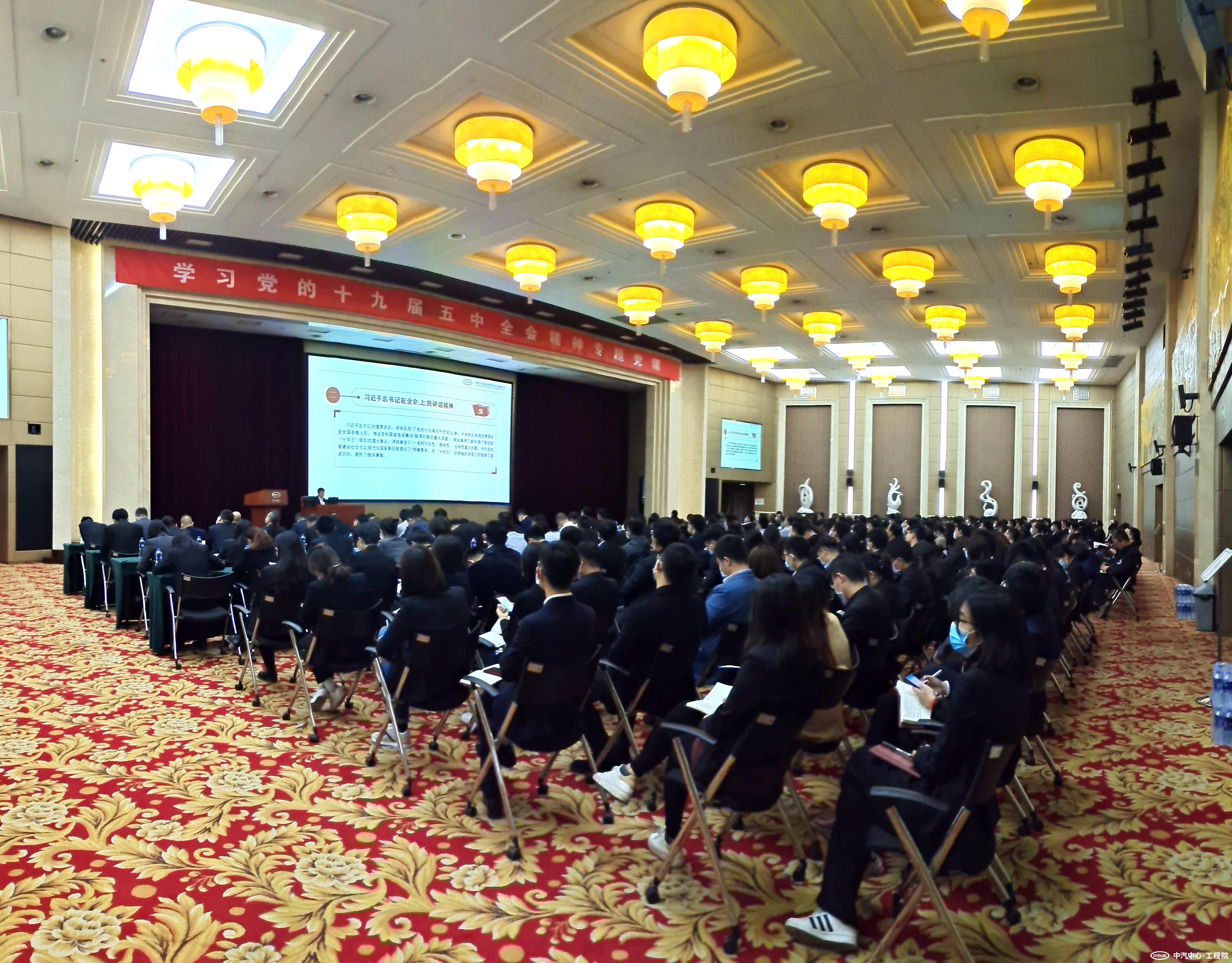 為深入學(xué)習宣傳貫徹黨的十九屆五中全會(huì )精神,把廣大黨員干部職工思想統一到全會(huì )精神上來(lái),把力量凝聚到全會(huì )確定的各項任務(wù)上來(lái),2020年11月23日下午,中汽中心黨委委員、副總經(jīng)理吳志新到聯(lián)系點(diǎn)黨組織講授“學(xué)習黨的十九屆五中全會(huì )精神”專(zhuān)題黨課。工程院黨委、信息咨詢(xún)公司黨委、中汽數據黨委、政研中心黨支部300余名黨員、干部代表參會(huì )。